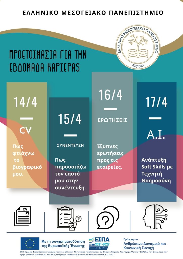 Στο διαδικτυακό portal του Γραφείου Διασύνδεσης (ΓΔ) του Ελληνικού Μεσογειακού Πανεπιστημίου (ΕΛΜΕΠΑ) θα βρείτε τις δράσεις, τις ανακοινώσεις και τις εκδηλώσεις του γραφείου, πληροφόρηση για μεταπτυχιακές σπουδές και υποτροφίες, καθώς και τους συνεργαζόμενους φορείς εργασίας και πρακτικής άσκησης.