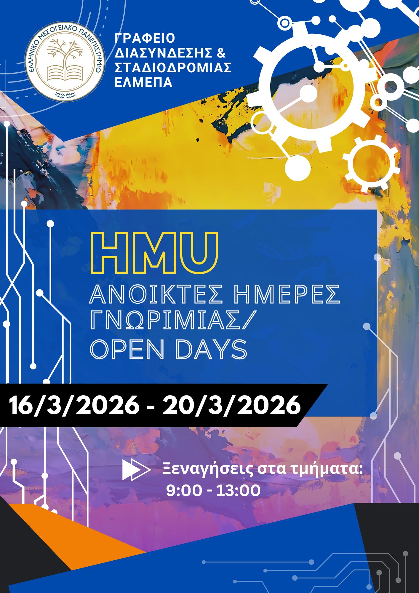 Ανοικτές Ημέρες Γνωριμίας, “Open Days“, από 16-03-2026 έως και 20-03-2026.